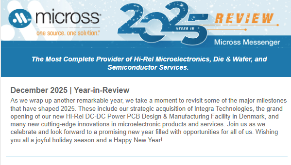 July 2022: Micross Strengthen Die, Wafer & Hi-Rel Products Offerings